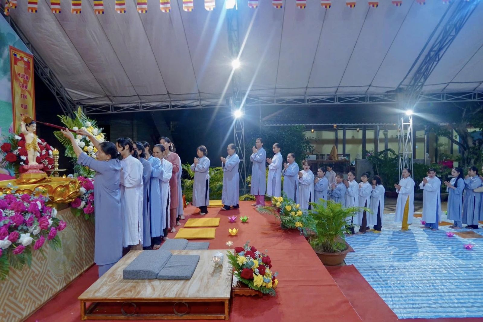 Buổi lễ khép lại trong ánh sáng lung linh của hoa đăng và niềm hỷ lạc tràn đầy của những người con Phật. Đây không chỉ là dịp để tưởng niệm ngày Đức Thế Tôn thị hiện nơi đời, mà còn là cơ hội để hàng Phật tử củng cố niềm tin Tam bảo, phát khởi tâm Bồ-đề và hướng đến đời sống tu học an lành, thấm nhuần giáo pháp.