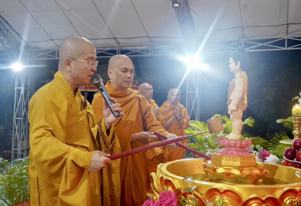 Sau lời đạo từ của Thượng tọa chứng minh, chư Tôn đức và đại chúng đã thực hiện nghi thức tắm Phật truyền thống trong không khí trang nghiêm, thắm đượm lòng thành kính và niềm hoan hỷ mừng ngày Đức Phật đản sinh.